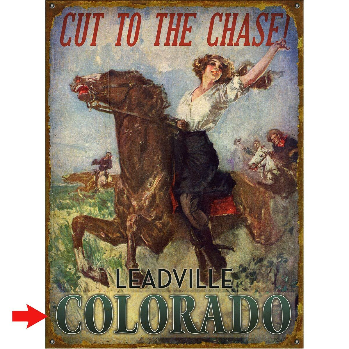 Give your office a western update with the Cut to the Chase Personalized Signs. Crafted with a woman riding a wild horse enhanced by customizable type to add your location, these signs make a beautiful accent.