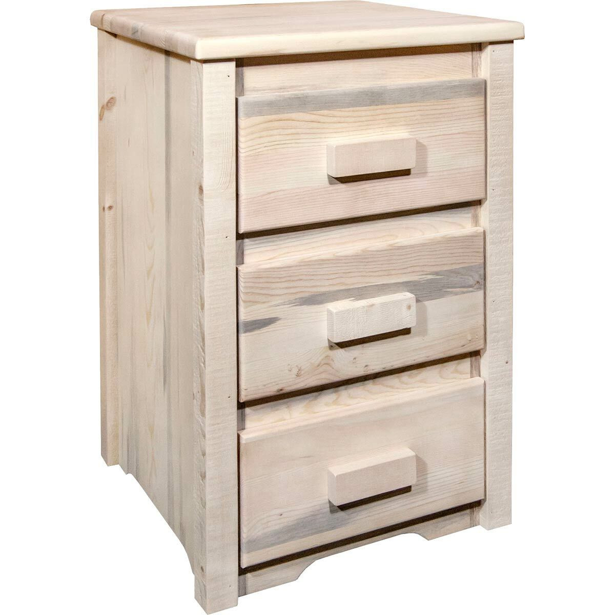 The Denver Nightstand with Three Drawers brings lodge style to your bedroom with solid lodge pole pine construction with a lacquer finish.
