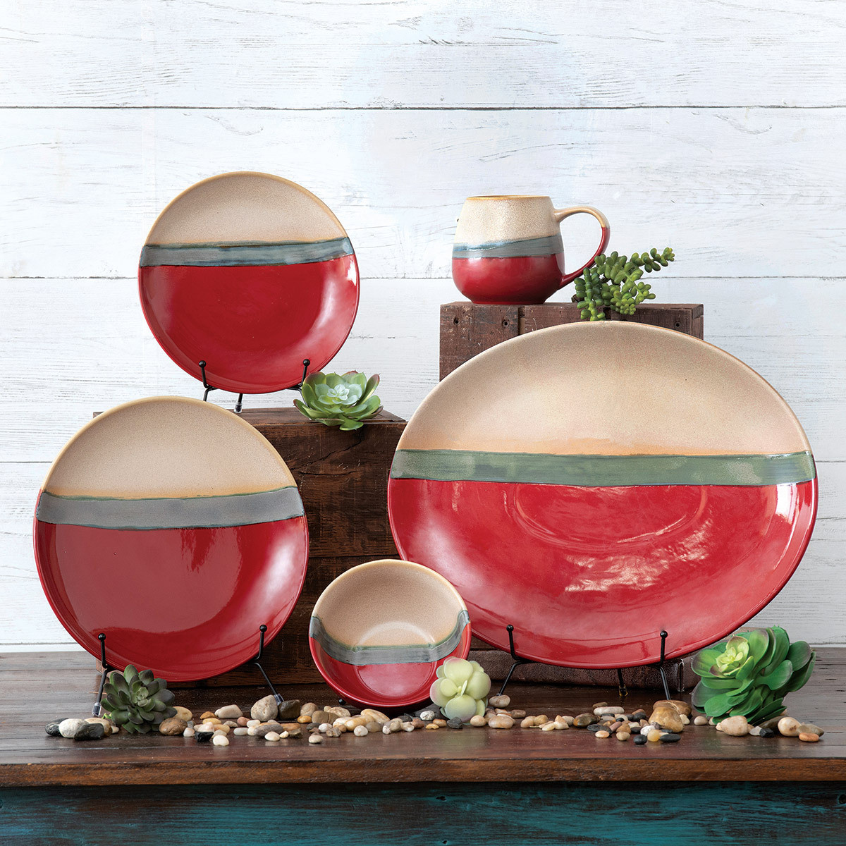 Compare Add to Cart The item has been added Desert Horizon Ceramic Dinnerware Set (16 pcs)- SALE Exclusive Item - Southwest hues of desert red, sand and gray highlight this ceramic dinnerware for a warm addition to your dining table. Dishwasher, microwave and oven safe. Dinner plates: 10 1/2"Dia. x 1 1/4"H; Salad plates: 8 1/4"Dia. x 1 1/4"H; Soup... View Details Please Select an option. Old Price $262.95 Sale Price: $219.95 219.95 Desert Horizon Ceramic Dinnerware Set (16 pcs)- SALEQuantity: Decrease Quantity: Increase Quantity:
