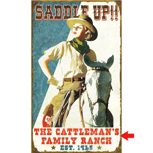 Showcase your western style with the Saddle Up Personalized Signs, designed with a lovely, young cowgirl on a horse above customizable text.